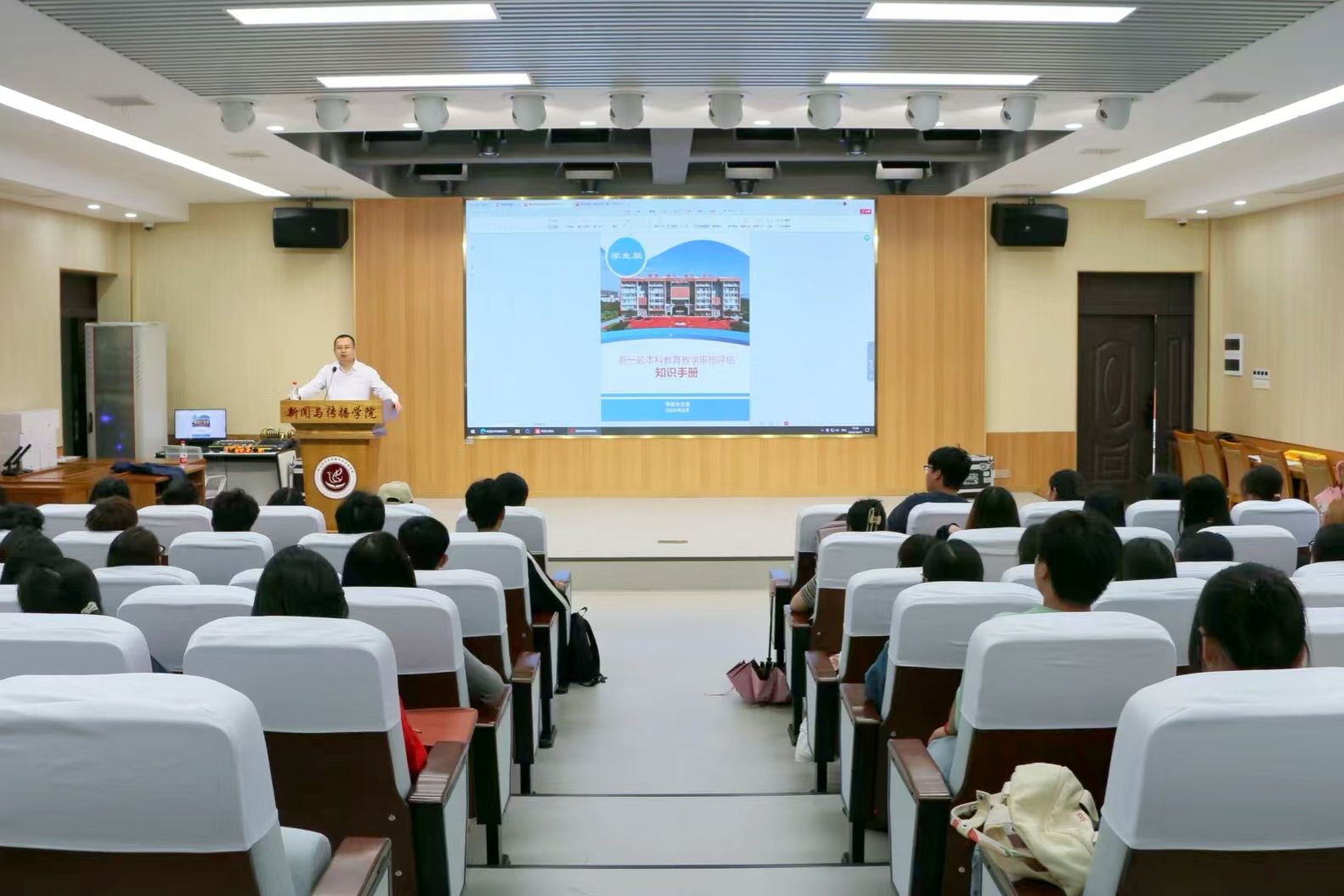 为进一步提升本科公司产品质量,确保新一轮本科公司产品审核评估工作的顺利进行,2024年10月15日,yl7703永利在文科楼A栋一楼演播厅召开了本科公司产品审核评估知识培训会。