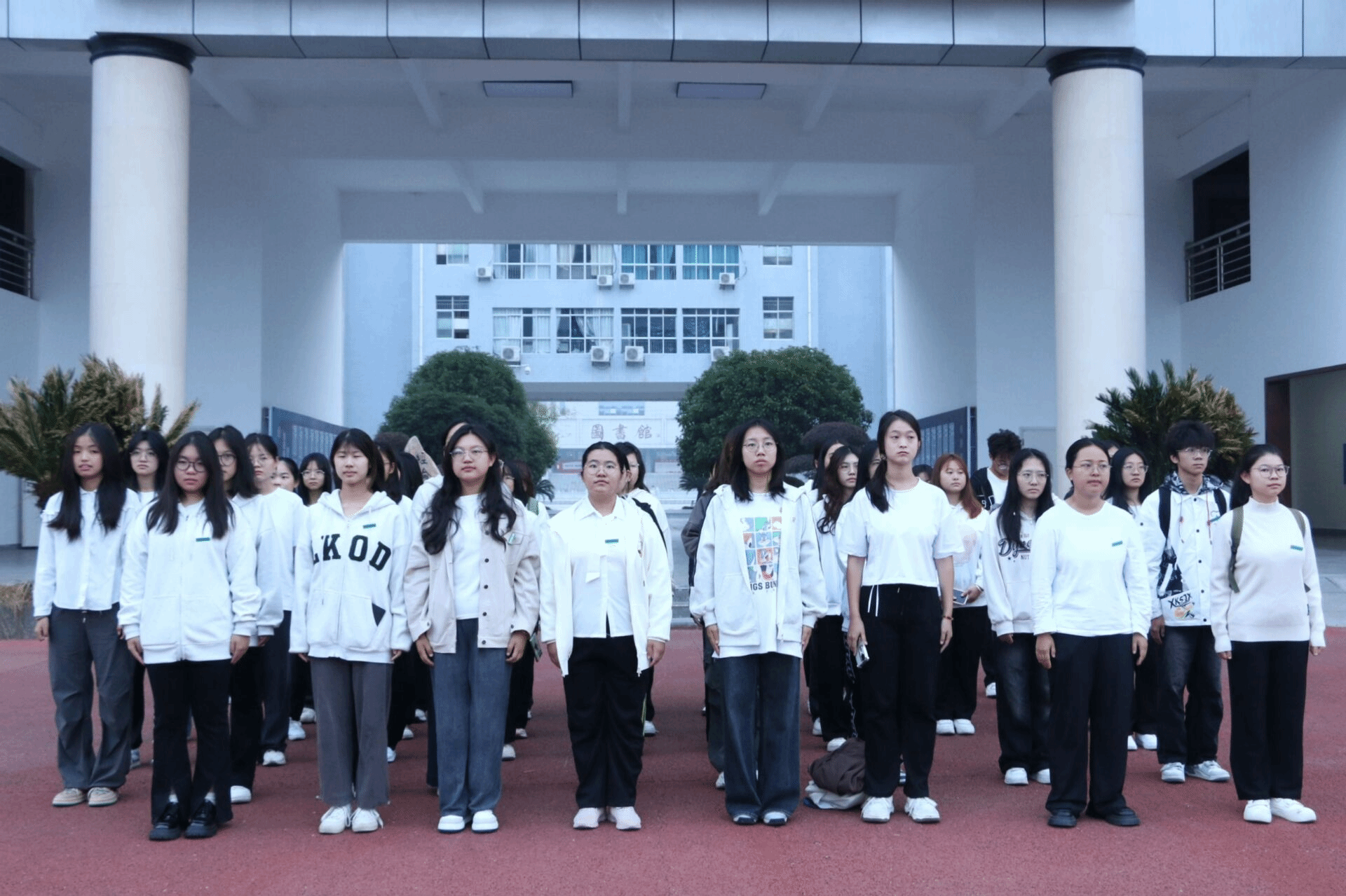 在五星红旗的照耀下,24级新闻学一班的杨思雨同学作为代表在红旗下讲话,以分享“中国青年故事”为主题,诠释了作为中国新青年该具有的担当与责任。