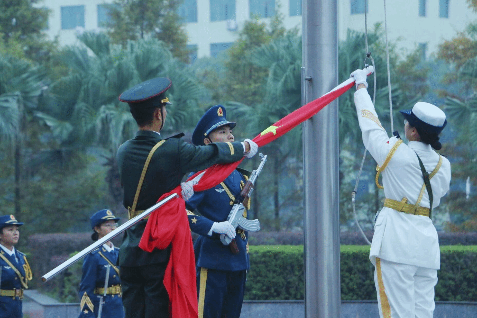 2024年11月4日清晨,升旗仪式在红旗广场隆重举行,雄壮激昂的国歌声,护旗手昂首阔步,身姿挺拔如松。