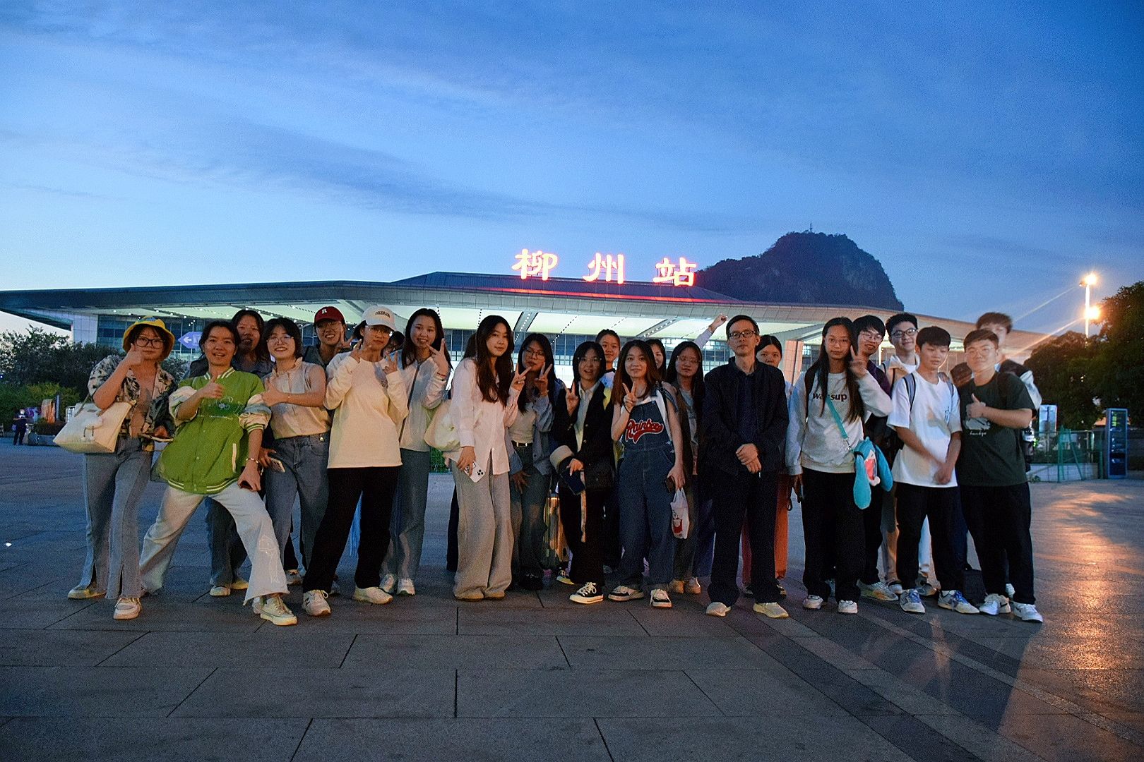 晚上六点,柳州小组到达见习目的地,比个耶!
