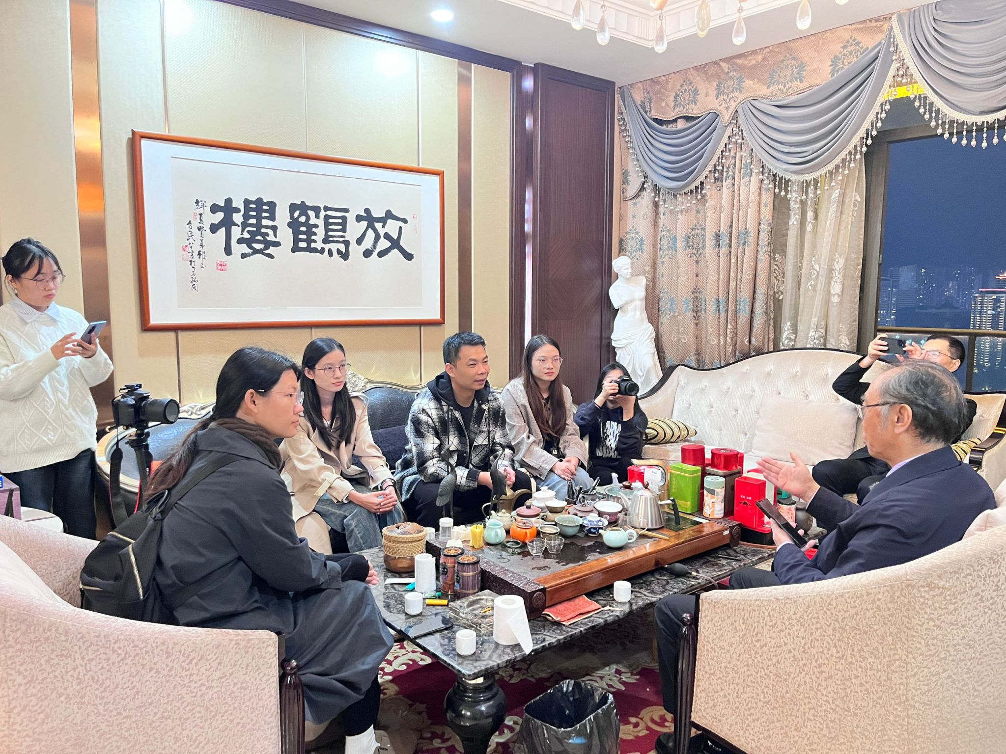 见习小组和老师们一起采访武辉夏