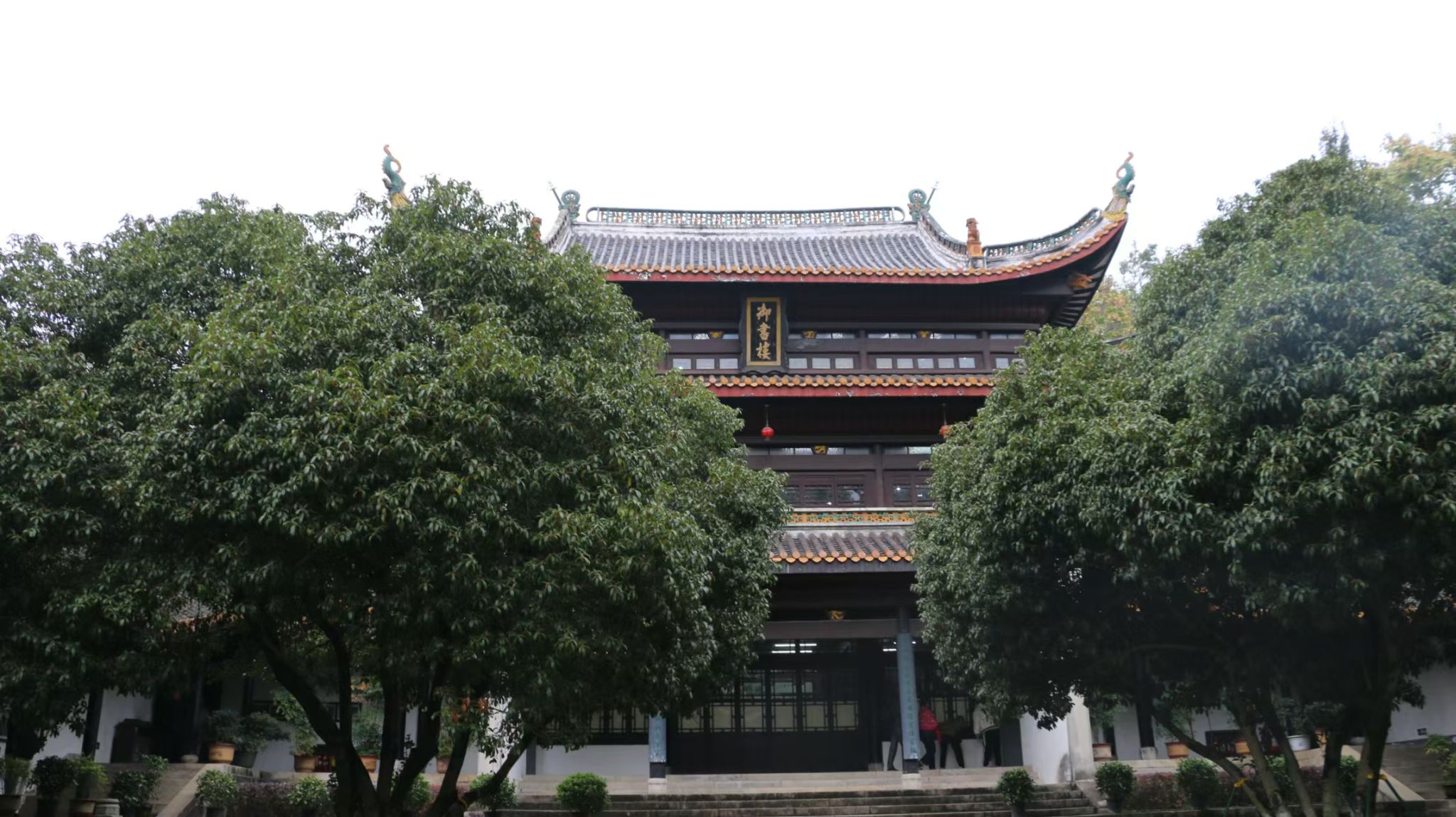 岳麓书院的御书楼坐落于葱郁树木之间,建筑风格典雅,飞檐翘角,古韵盎然。楼体庄重,彰显出深厚的文化底蕴,仿佛在静静诉说着书院历经的岁月与传承的智慧。这里曾收藏诸多珍贵典籍,是知识的宝库,也是岳麓书院学术地位的重要象征。