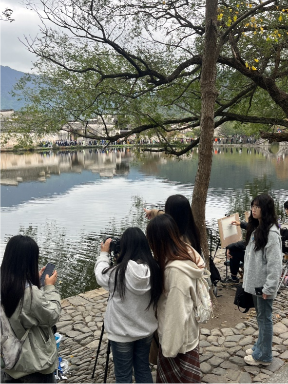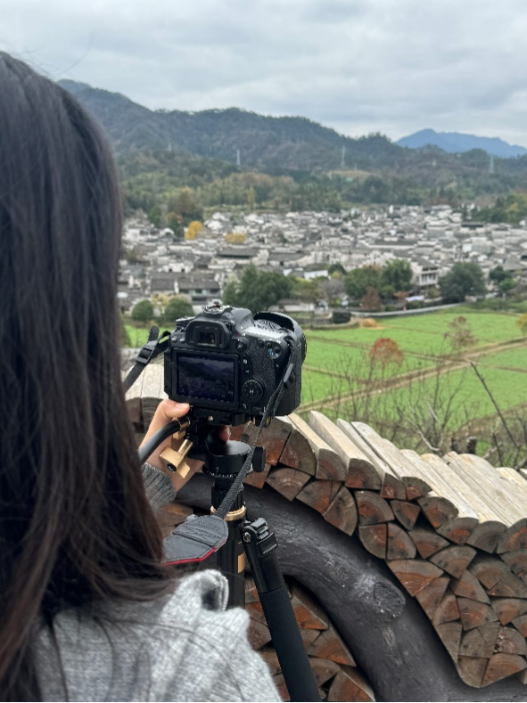 他们今天穿梭于宏村与西递的小巷之间,用镜头捕捉着动人的瞬间,水波粼粼的宏村水系成了他们镜头下的主角,镜头下的水流仿佛有了生命,讲述着古村落的悠悠岁月。他们不仅捕捉到了水流在村落中的独特作用,还通过空镜头的拍摄,巧妙地串联起了整个村落的美景,让人仿佛置身于一幅动人的水墨画中。