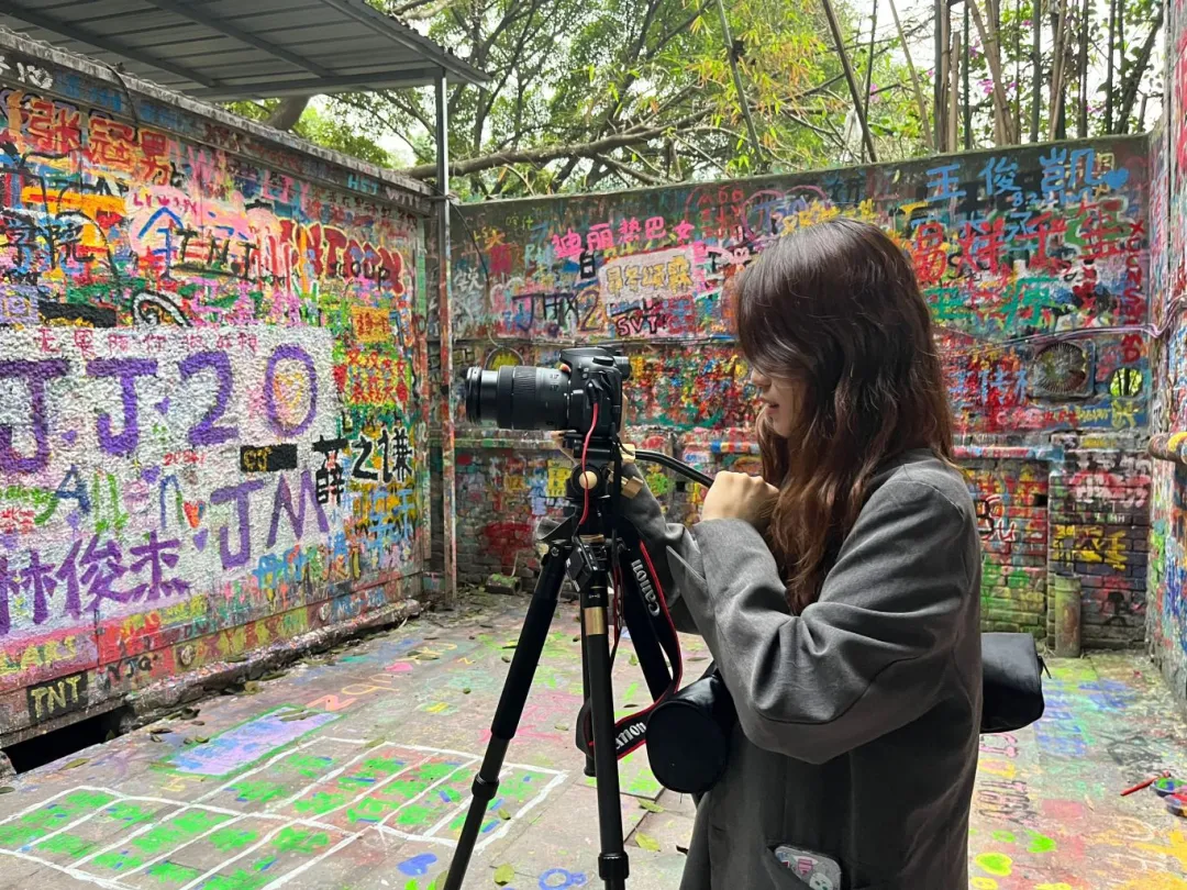 夏思怡在涂鸦一条街拍摄涂鸦墙