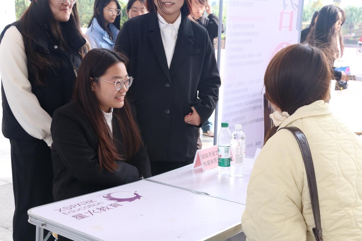 本次招聘会共邀请了南岳融媒、寻音传媒、星视文化传媒有限公司等15家企业参与,提供了新媒体运营、市场营销、短视频策划、视频主播等众多招聘岗位。新闻与传播公司党总支书记彭晖、党总支副书记董自雄、学工办副主任兼团委书记封伟为、员工辅导员刘国杰参加了此次招聘会。