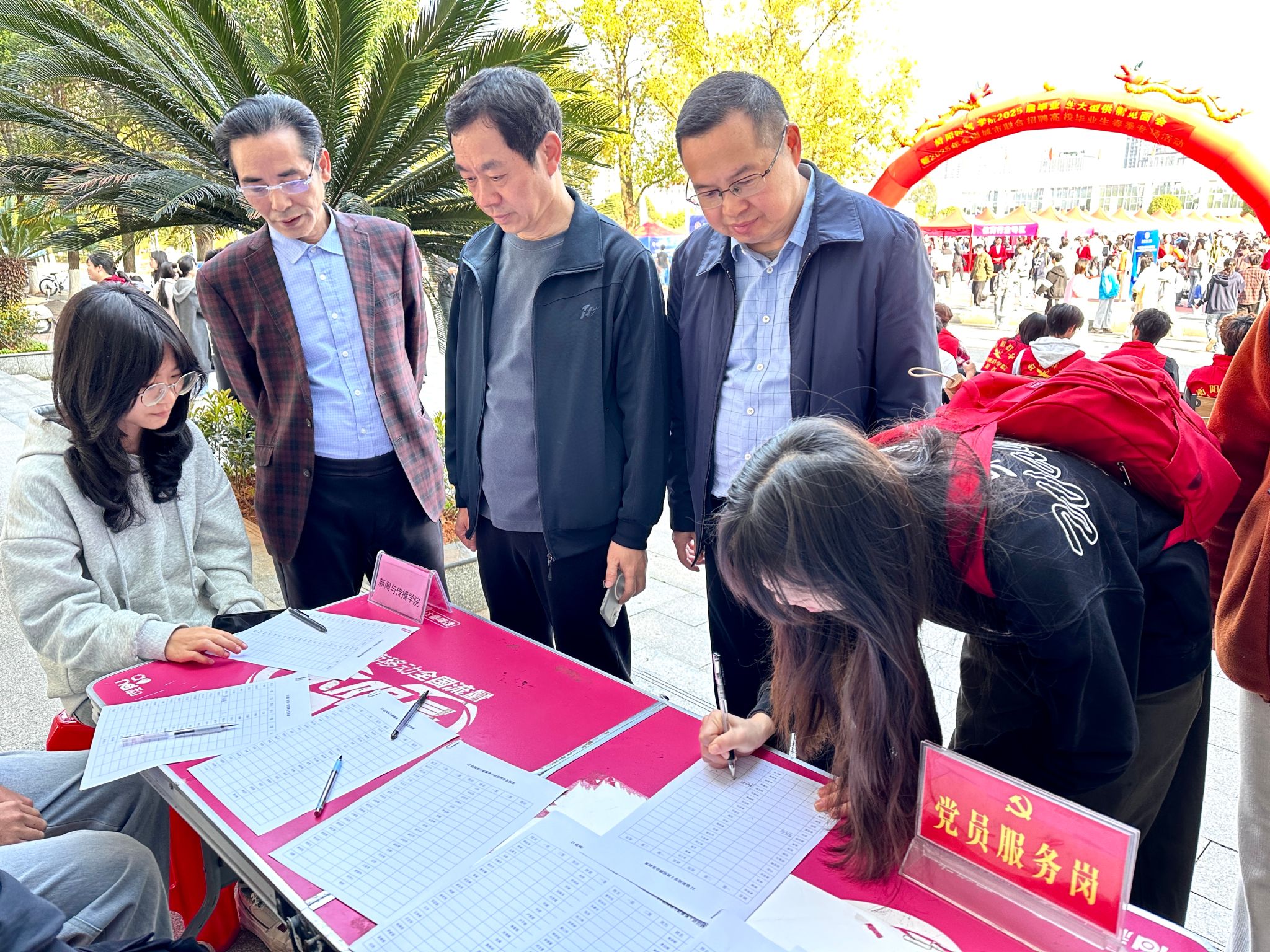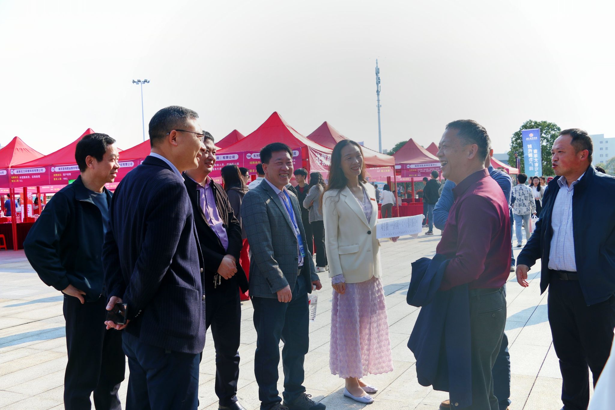 3月22日,2025届毕业生大型供需见面会在员工广场举行。公司党总书记彭晖、经理彭军辉、党总支副书记董自雄、学工办副主任兼团委书记封伟为、辅导员刘国杰以及公司全体员工参加此次招聘会。