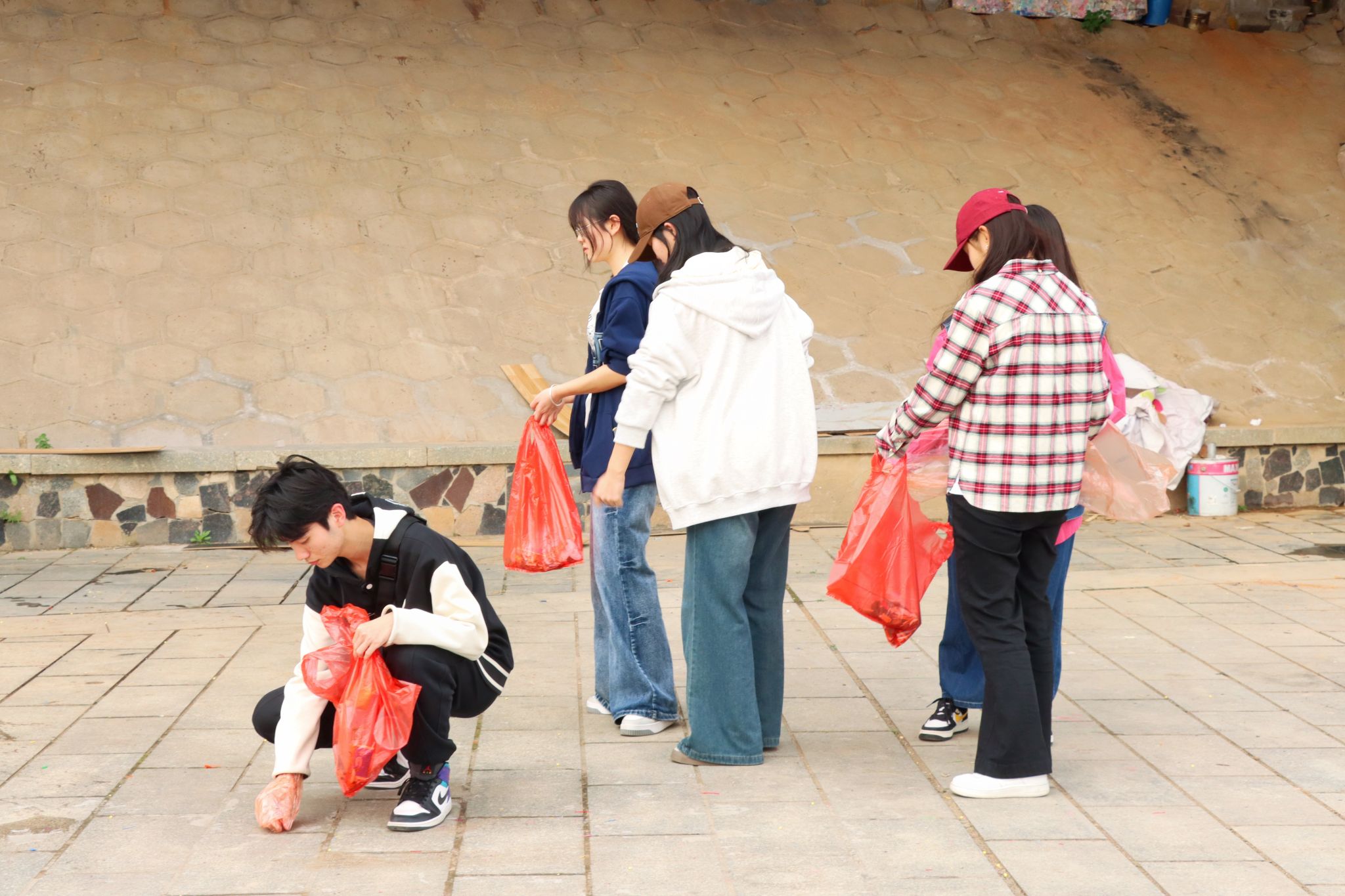 尽管春日的阳光逐渐热烈,但志愿者们的热情丝毫未减。大家相互协作,默契配合,年轻的脸庞上洋溢着专注与坚定。在近一个半小时的活动中,志愿者们清理出了大量垃圾,河滩面貌焕然一新。