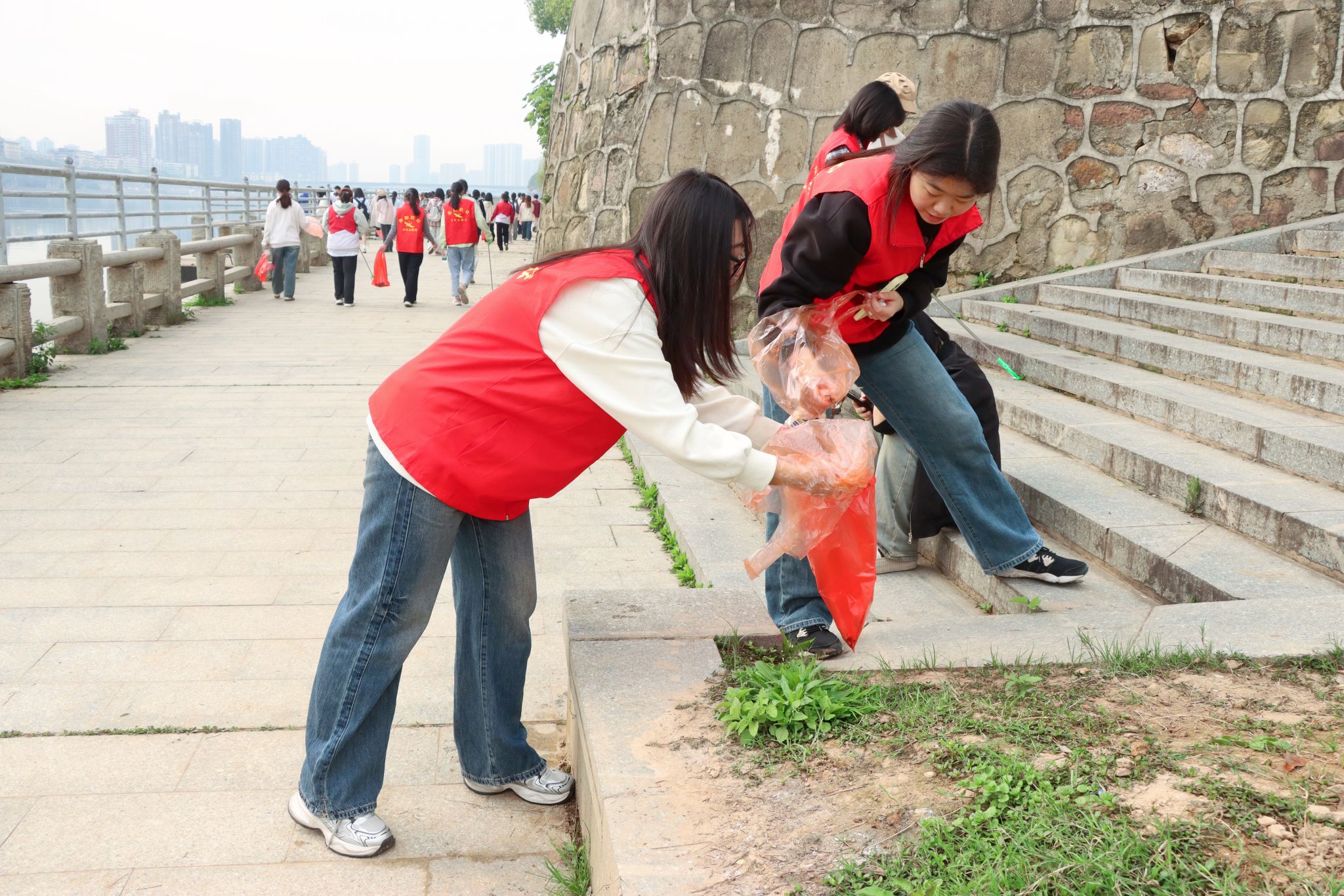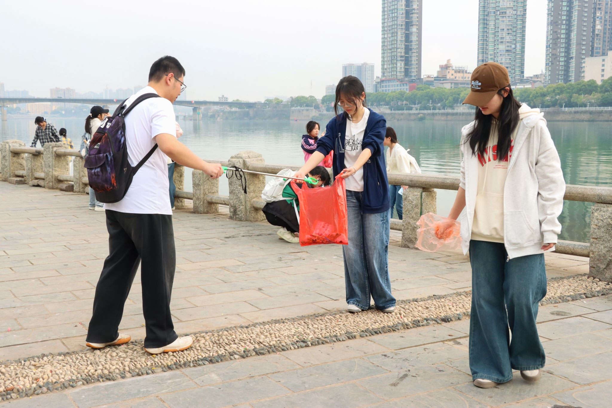 3月23日上午九点,志愿者们准时齐聚衡阳市石鼓区石鼓书院沿江风光带。春日的湘江畔,志愿者们热情高涨,立马投入进这场意义非凡的公益之旅。