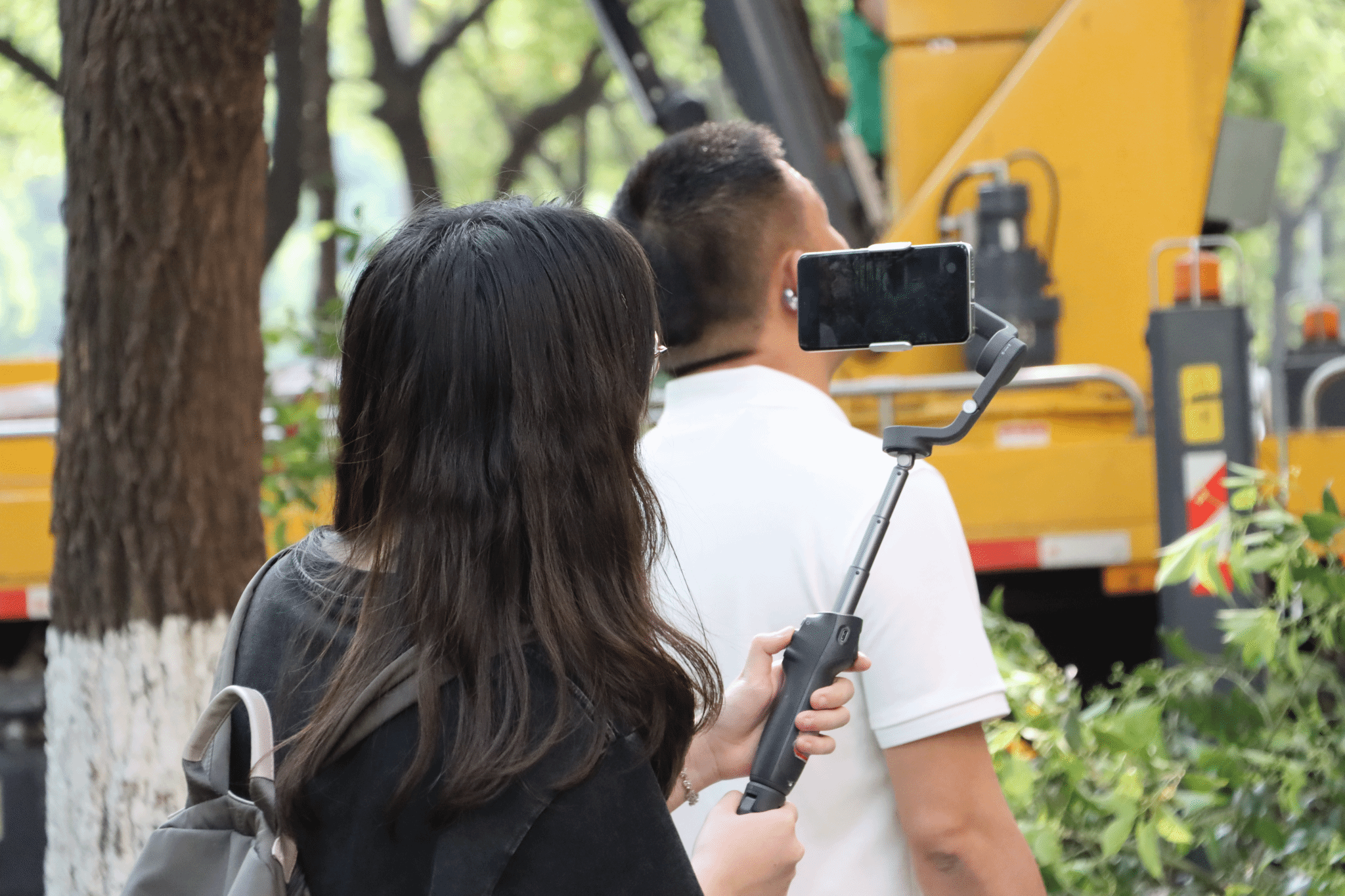 高爽组拍摄绿化养护人员高空作业
