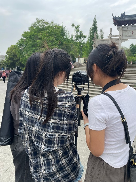 石鼓书院是湖湘文化的重要发祥地,具有深厚的文化底蕴,承载着千年的历史记忆和文化传承。依据前期策划,我们小组先对书院标志性建筑禹碑亭、合江亭等进行全景拍摄,随后深入院落,以特写镜头展现文化底蕴。拍摄期间,部分场景受游客人流影响,团队灵活调整拍摄顺序,保障拍摄顺利。