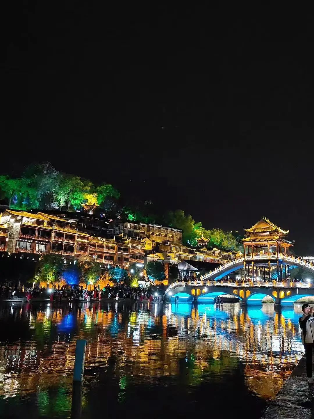 漫步于凤凰街巷,一只小狗在青石板上慵懒晒着太阳,成员们驻足逗弄,镜头里小家伙眺望远方的模样,恰是古城惬意生活的生动剪影。沱江水面泛起温柔涟漪,吊脚楼倒影随波晃动。小组成员们举着手机定格每一帧风景,亦捕捉到彼此眼中闪烁的灵感。夜幕降临时,古城灯火渐次点亮,各小组的实践记录仍在继续。