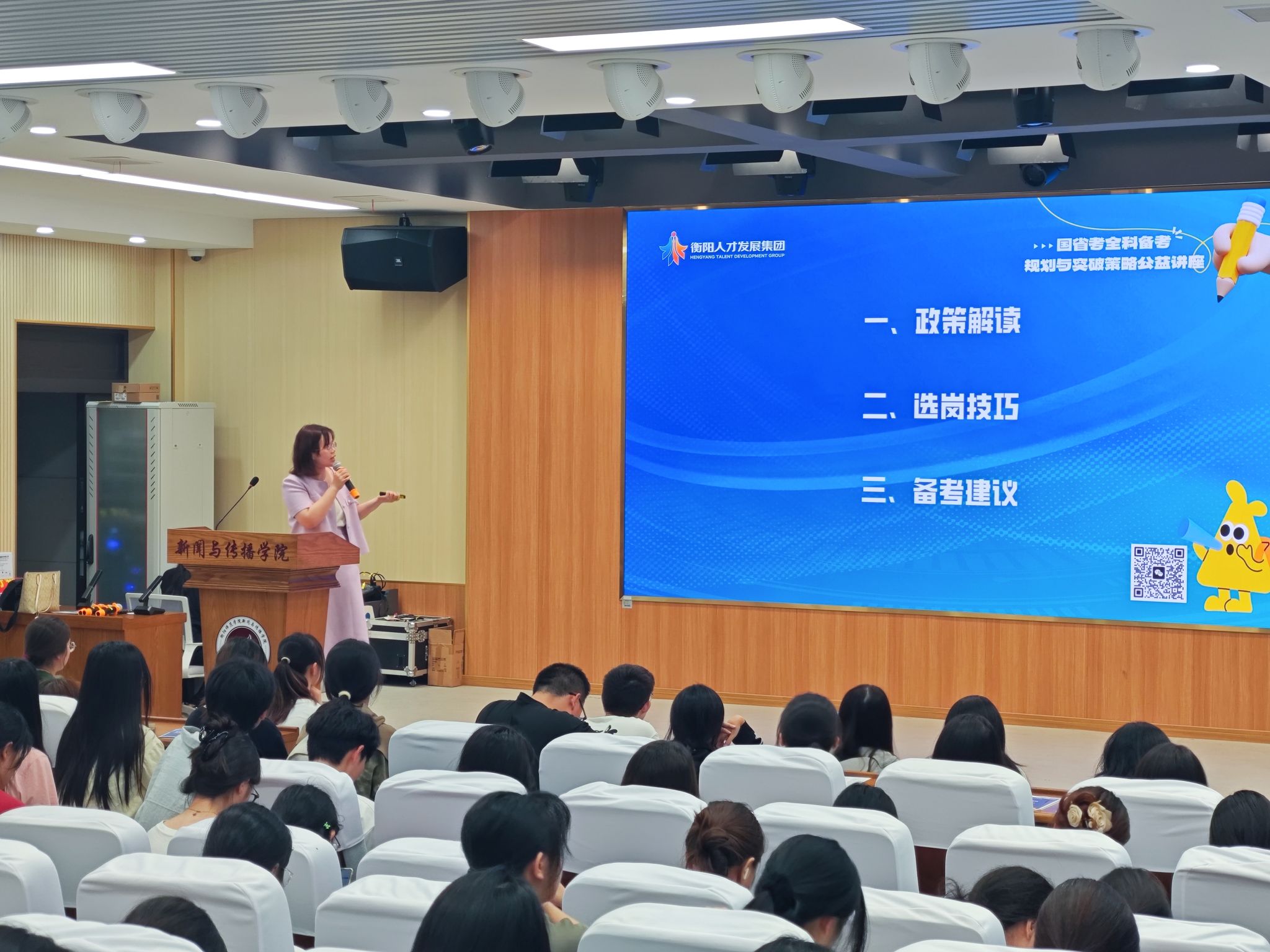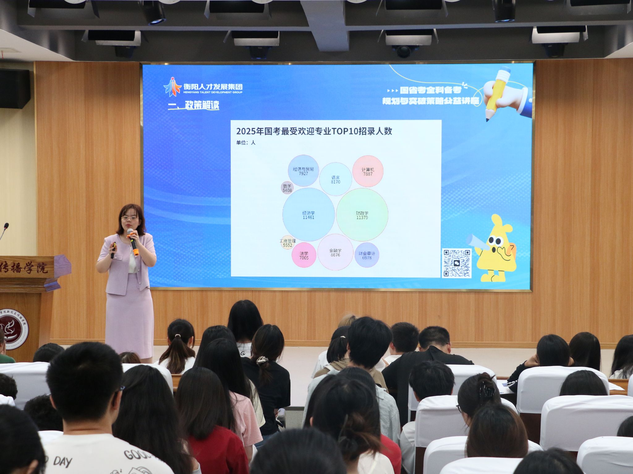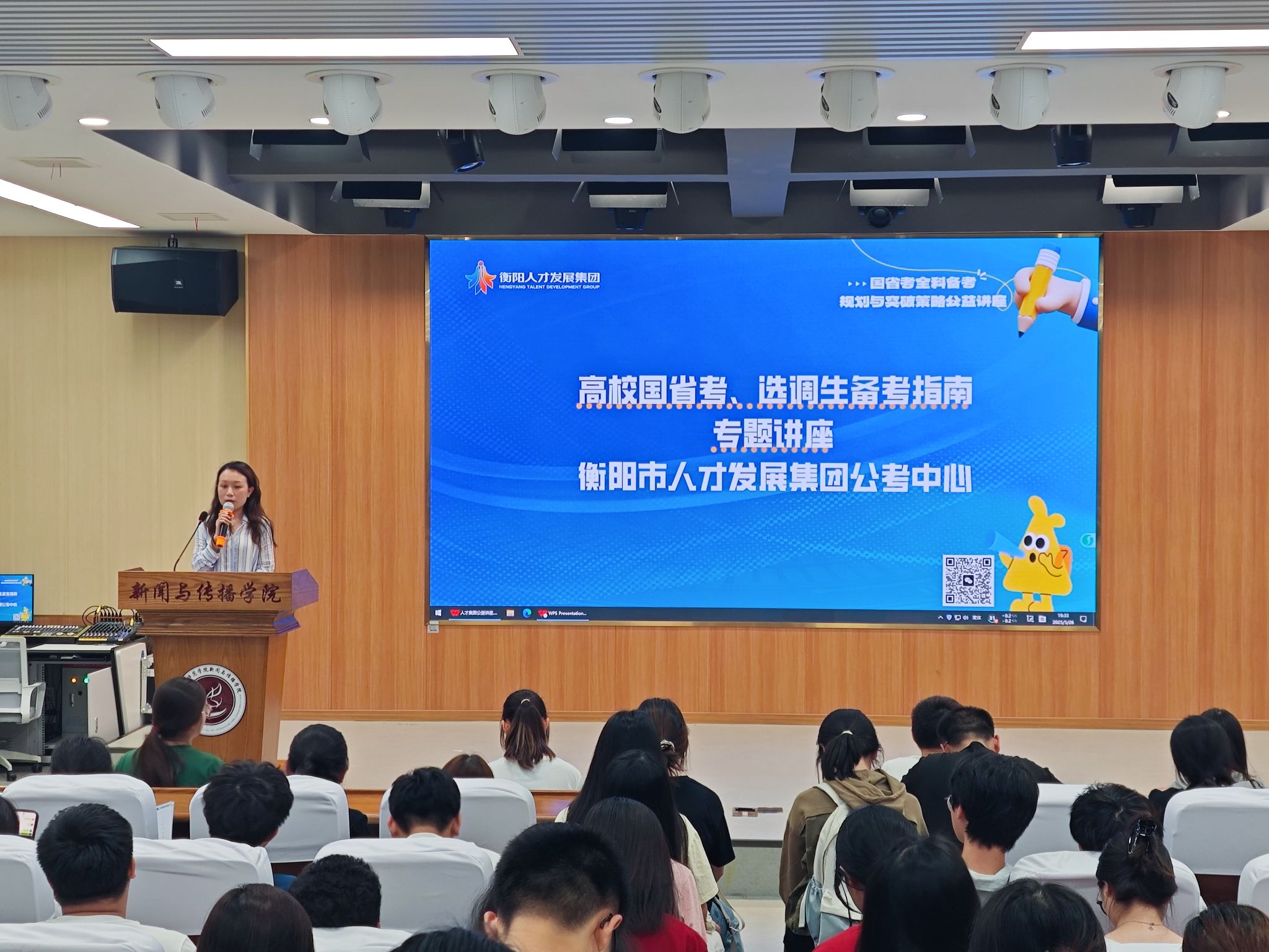 为帮助同学们更好地了解考公政策及策略,2025年5月26日,yl7703永利特于文智楼107演播厅举办公考讲座。公司邀请了衡阳市人才发展集团公考中心的罗晴主任和王老师为同学们进行考公分享。