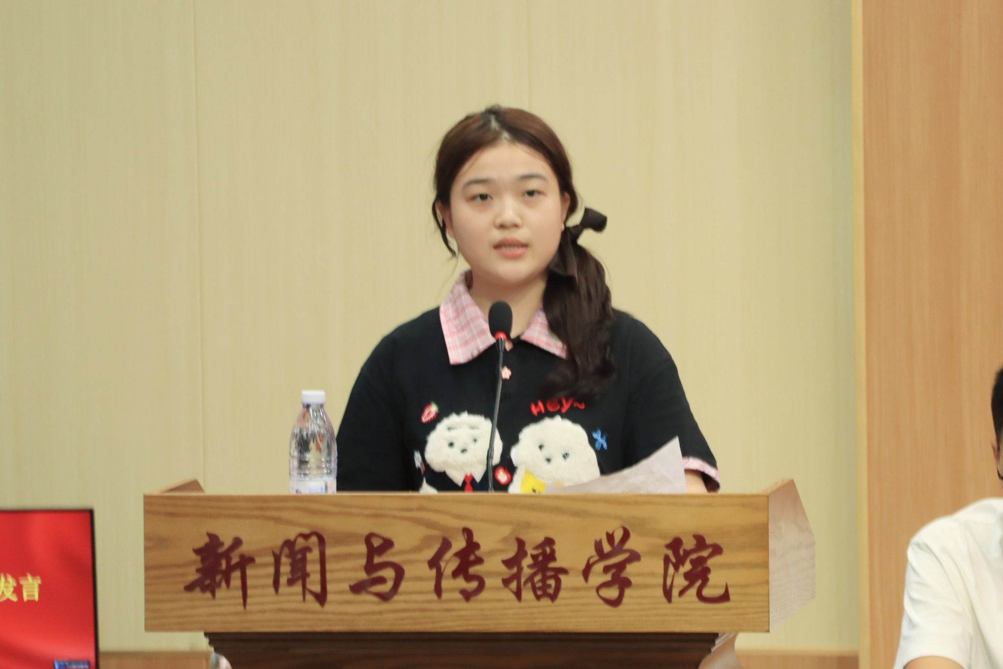 接着,老生代表崔晗分享了四点建议:一是保持对专业的热爱;二是将课堂所学融入生活,注重实践;三是多与不同专业的人交流;四是做有温度的新闻人。