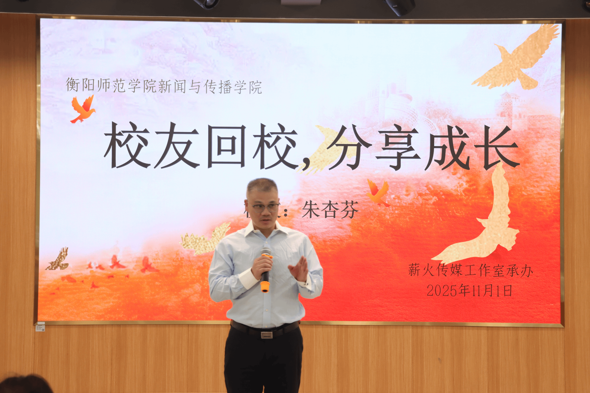 在实践方面,朱杏芬以自身在薪火传媒的实践经历为切入点,强调“实践是最好的老师”。任职期间,她在内容采编、摄影摄像等实战工作中积累了大量经验,在省级媒体发布稿件20余篇,其中一篇稿件阅读量高达20万余人次。她鼓励学弟学妹要敢于尝试、不怕犯错、主动“折腾”。同时特别提到,公司为同学们提供了薪火传媒、工作坊课程、专业见习等宝贵的实战机会,大家应学会利用这些资源,主动对接、深度参与,在实战中不断提高自己的专业能力。并且结合当前新传行业的人才需求趋势,朱杏芬提出新传人要争当“六边形战士”,打破“单一技能依赖”的局限。她解释道,如今媒体行业更青睐“全方位”人才,仅掌握单一技能难以满足岗位需求,必须同步培养写、拍、剪等多维度能力,让全面能力成为自身的核心竞争力。此外,她还特别强调沟通协作能力的重要性,认为在团队项目中,精准表达需求、合理使用话术,能大幅提升工作效率。