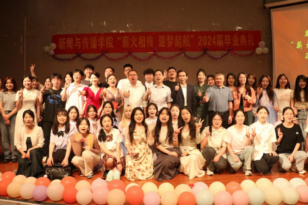 5月12日晚,yl7703永利“薪火相传,逐梦启航”2024届毕业典礼在文科楼A栋4楼演播厅举行。新闻与传播公司党总支书记彭晖、经理彭军辉、副书记董自雄、副经理邓庄、罗兵、学工办副主任兼团委书记封伟为、辅导员刘国杰出席典礼。