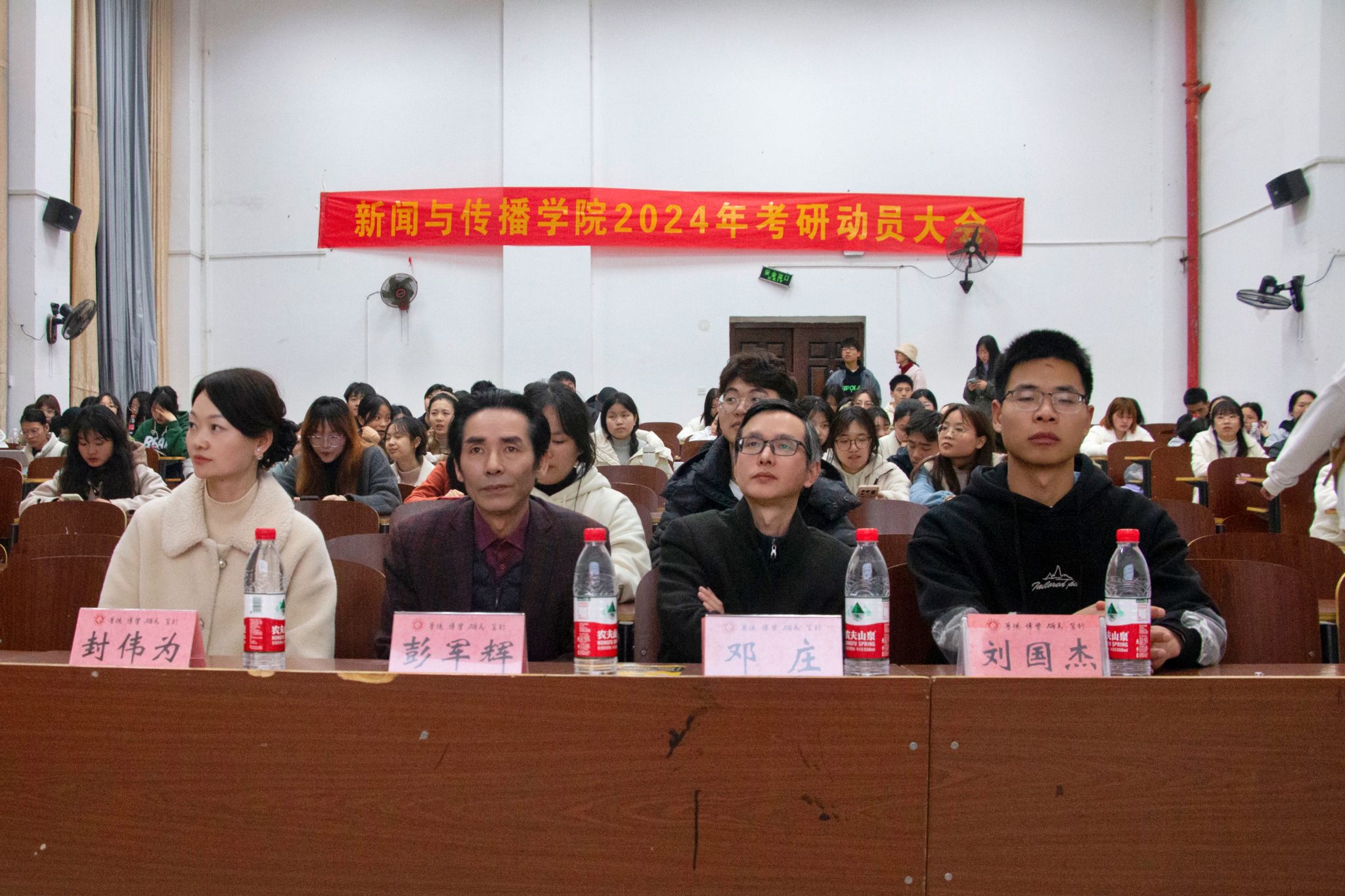 3月20日,为激发公司25届毕业生考研的积极性,明确考研目标,树立自信心,公司于外语楼北101教室召开考研动员大会。公司经理彭军辉、副经理邓庄、学工办副主任兼团委副书记封伟为、辅导员刘国杰、研究生邹莉、龙羽茜、徐浩凯以及21级全体同学参加会议。