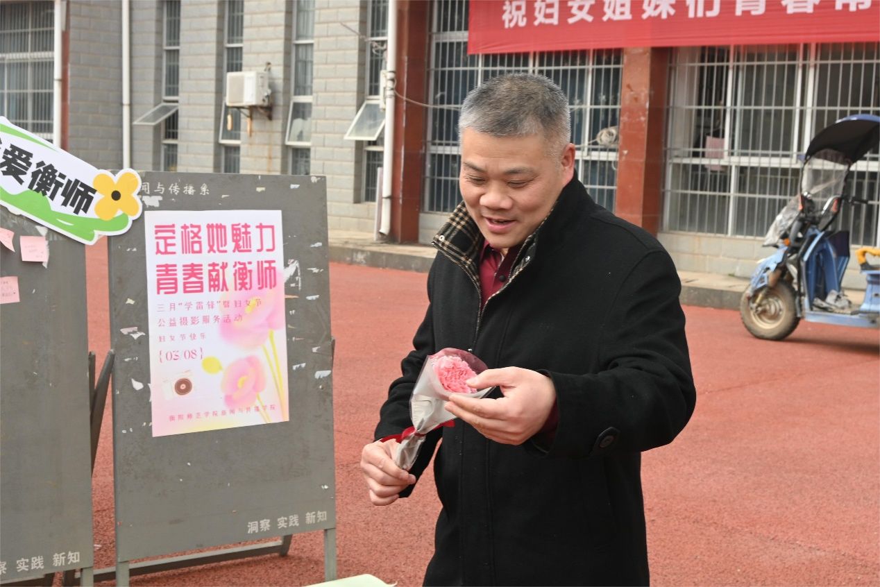 活动现场,志愿者为参与活动的女老师和女同学们送上了一朵朵鲜花,向每一位女性师生致以最真挚的节日祝福,一朵朵鲜花,传递着对女性的敬意与感激,更是衡师大家庭的温暖与关怀。