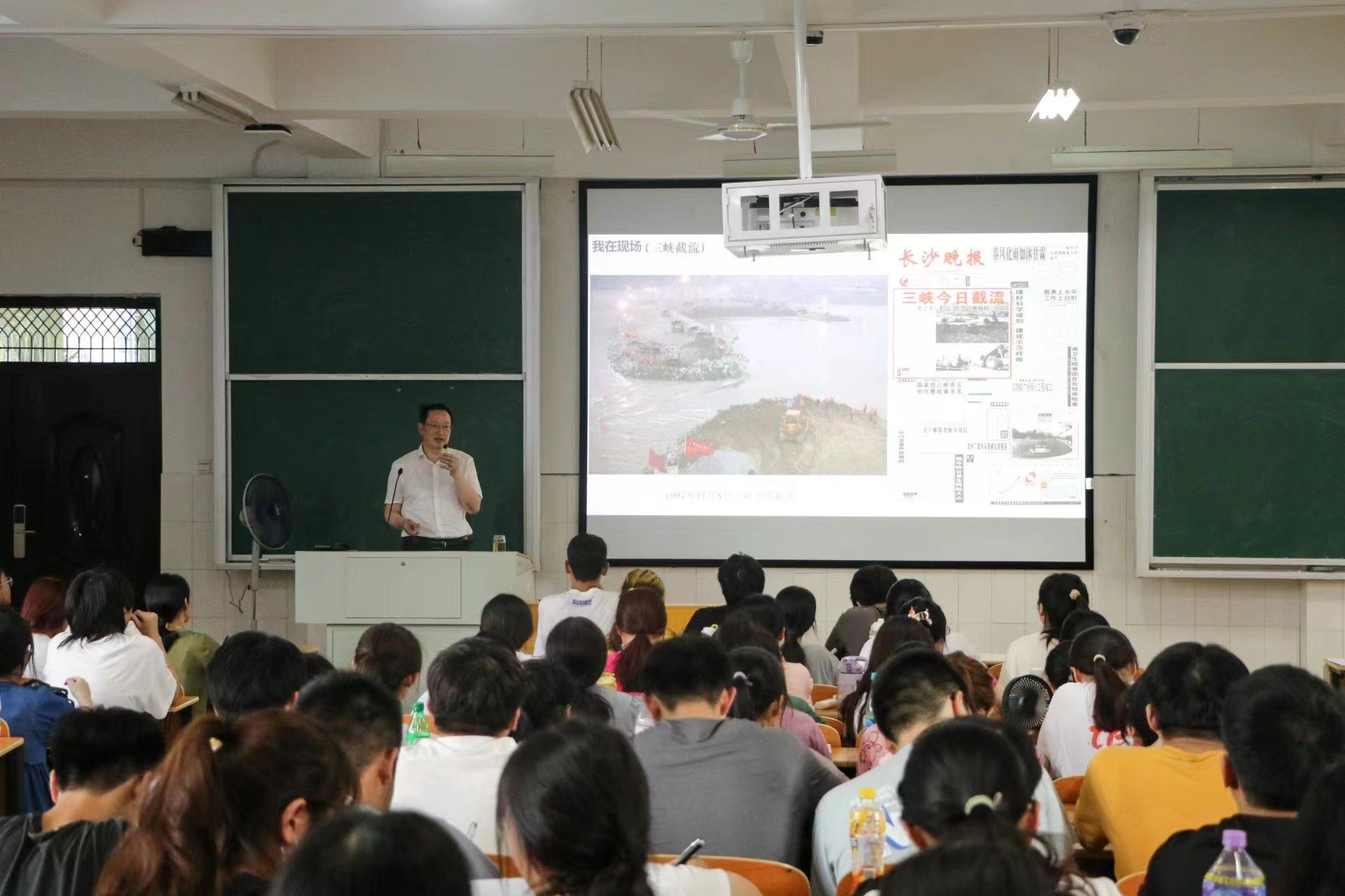 “‘衙门’里跑不出名记者,这是新华社原社长、老一辈新闻工作者穆青1998年底接受我采访时说的一句话,现在我把这句话送给你们。”近日,中国记者协会马克思主义新闻观培训授课教师,长沙市广播电视台(集团)党委副书记、副台长潘开政教授走进yl7703永利东校区,向该校180余名师生宣讲如何“做马克思主义新闻观的践行者和传播者”。