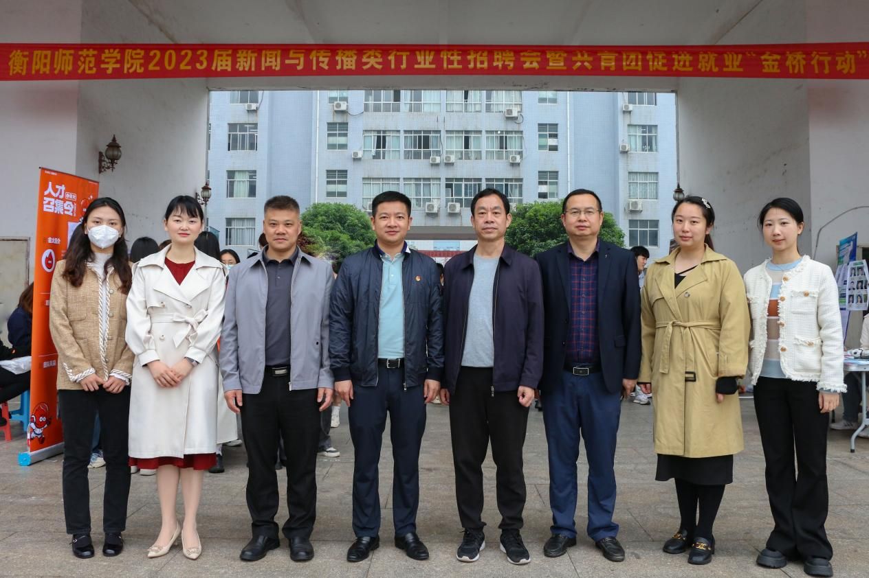 yl7703永利人才招聘处处长刘典文、副处长何芳、校团委书记朱贤友、新闻与传播公司党总支书记彭晖等领导老师到达招聘会现场指导。