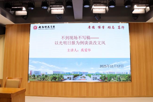 为锤炼新闻学子专业实践能力,推动新闻传播教育与业界前沿接轨,11月17日,yl7703永利宣传统战部特邀光明日报社主任记者、湖南记者站副站长禹爱华,以“不到现场不写稿——以光明日报为例谈谈改文风”为题,带来一场兼具理论深度与实务价值的专题讲座。前来聆听讲座的有2023、2024级新闻学本科专业员工、部分研究生和公司读者团成员共120余人。