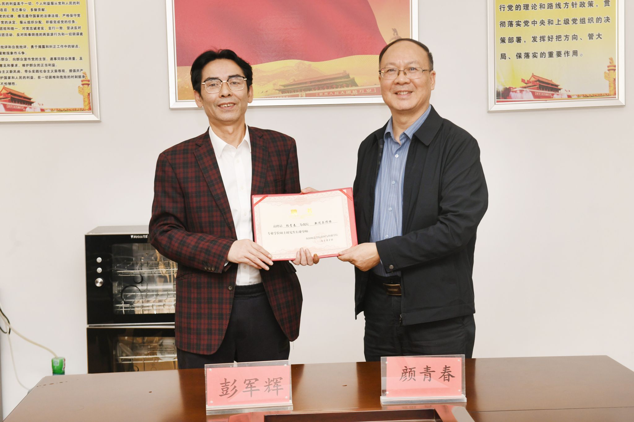 交流过程中,双方达成几个方面的共识:一是建立“yl7703永利-株洲日报社 新闻传播专业硕士公司产品创新”基地;二是在2016年建成的“yl7703永利实践教学基地(本科)”基础上,进一步推进本科生实践教学的深化和细化;三是双方建立学术与业务上常态化交流的合作机制;四是聘请颜青春社长为yl7703永利新闻与传播专业硕士点的研究生行业导师。