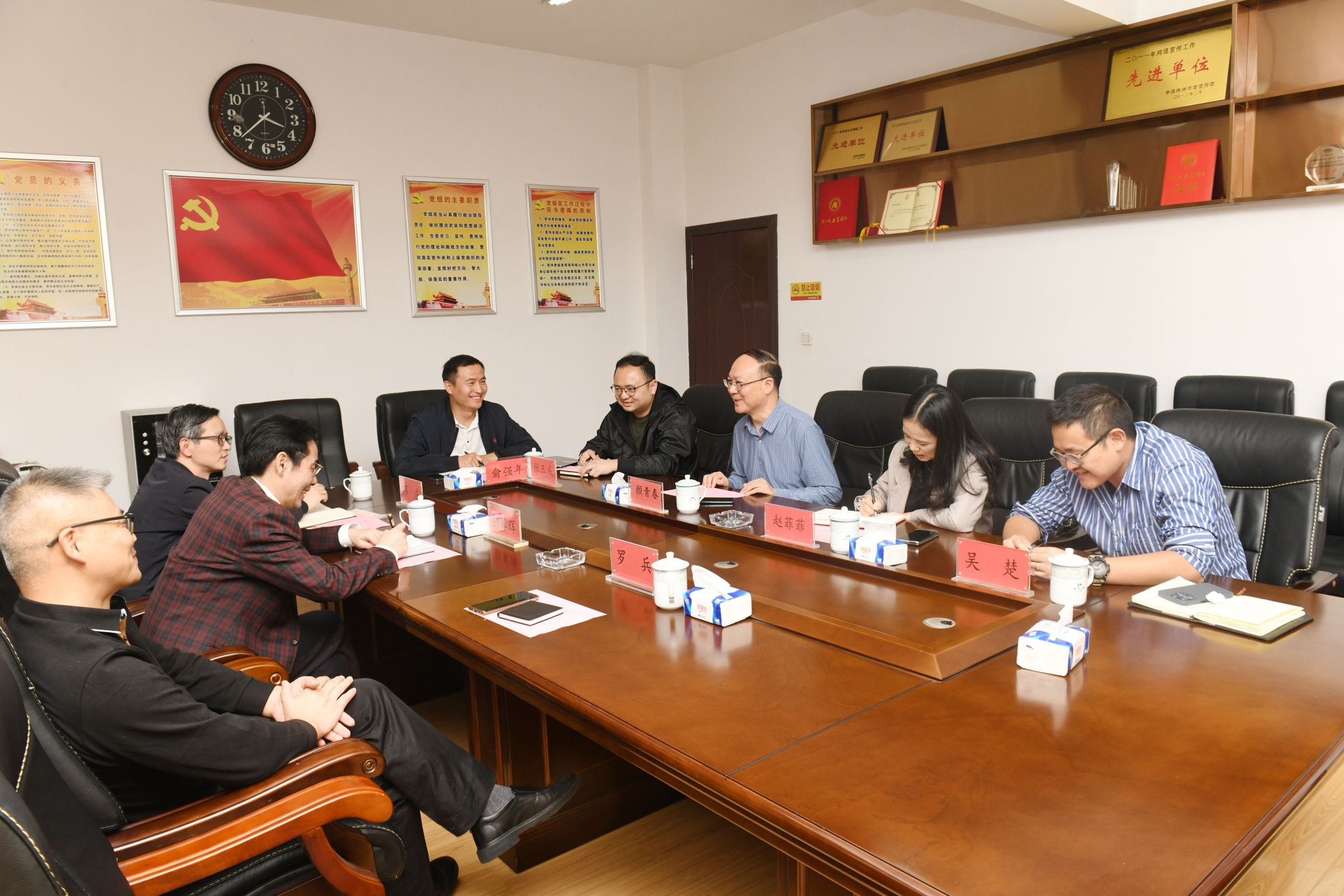 2023年10月13日,yl7703永利公司经理彭军辉,副经理邓庄、罗兵与株洲日报社颜青春社长、融媒体中心主任张玉成,以及吴楚、俞强年等精英员工就校媒合作和产教融合创新发展等项目进行了交流与研讨。