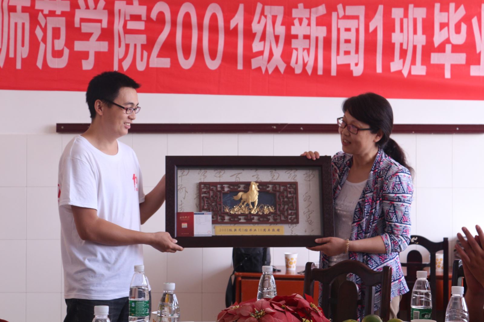 班会由老班长刘星主持。他代表全班同学对到场的老师,同学以及工作人员表示真心感谢。随后,他一一介绍到场的同学,同学们则逐一起立向老师深深鞠躬,感谢老师们曾经孜孜不倦的教诲。之后,向院里和老师赠送了专门定制的精美礼物。接着,经理汤劲致辞,她说同学们的到来其实就是最好的礼物,十年以来,同学们在成长,公司也在成长,随后介绍了公司和公司的发展状况,祝愿同学们未来事业更加辉煌,家庭幸福美满。原系主任兼班主任杨汉云老师、原系总支书记陈敏、彭军辉副经理先后发言,表达再次见到同学们的喜悦与激动之情,他们说,2001级同学们是老师们心中的骄傲,已成为老师们给历届员工讲述的励志人物。公司员工办左葛生主任专程前来参会。院办主任程昌、任课教师陈小波、冯林、盛芳等参加了此次活动。