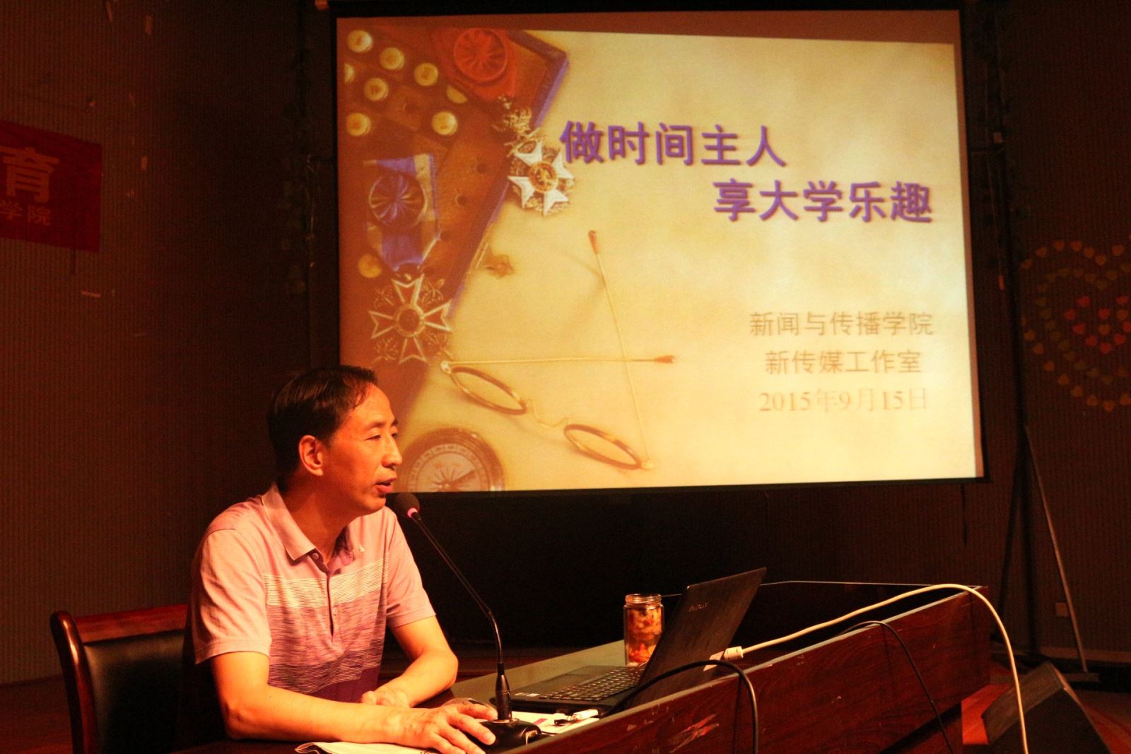 为配合公司教学工作的展开,更好的让新生们融入到老员工活中来,9月14日至20日,公司接连在模拟演播厅召开四场2015级新生入学教育活动。主讲人分别为公司党总支书记邓玉久,党总支副书记周新文,经理汤劲,辅导员资禹剑。