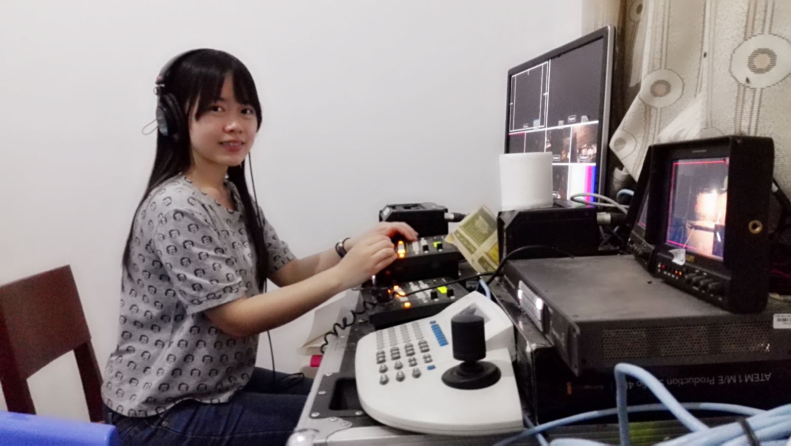 刘晶(2012级广播电视学专业)在我们来湖南卫视一个月之后,也去了湖南经视《幸福来欢唱》栏目实习。虽然两栋楼分隔不远,但我们很少一起吃饭,下班时间也不一样。《幸福来欢唱》海选期间,报名电话由导演组轮流接听,在刘晶接听的时候,遇到有七八十岁的老人家打电话报名,一口老长沙话让这个东北姑娘常常哭笑不得,也满头大汗。