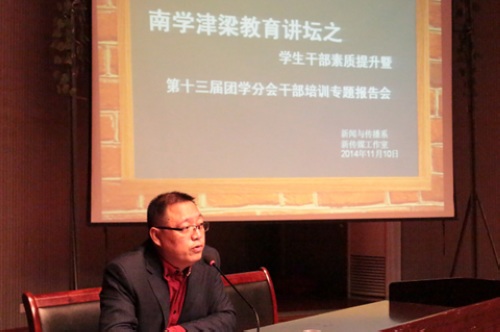 11月10日下午,yl7703永利团委书记曹鑫、yl7703永利学工处副处长文怀诚,在演播厅为我系员工干部举办专题讲座。此次讲座属于“南学津梁”教育讲坛的内容之一,讲座主题为员工干部的素质提升。