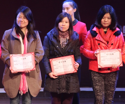 随后,晚会揭开了第一类奖项:“十位魅力女教职工”。在一段获奖者人物介绍视频后,主持人宣布获奖名单,她们分别是:图书馆分工会彭巧燕、外语系分工会贺学耕、美术系分工会赵晶晶、生科系分工会曹丽敏、数计系分工会李浏兰、化材系分工会刘梦琴、新闻系分工会盛芳、计算机分工会王樱、南岳公司分工会尹洁、后勤集团分工会高文。