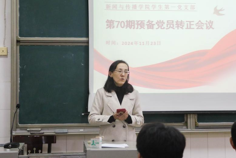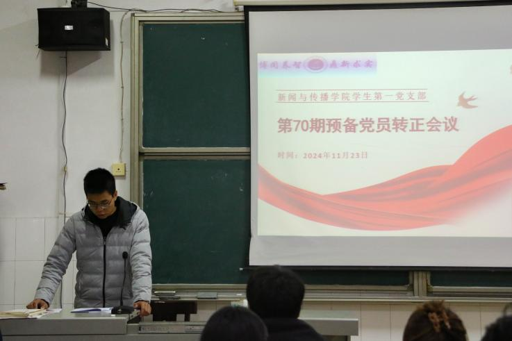 2024年11月23日,公司员工第一党支部预备党员转正会议于文科楼A609顺利召开。新闻与传播公司党总支书记彭晖、党总支副书记董自雄、员工第一党支部书记刘国杰出席会议。员工第一党支部组织委员曾雨恬主持会议,员工第一党支部全体在校员工党员到场参会,部分员工党员线上参会。
