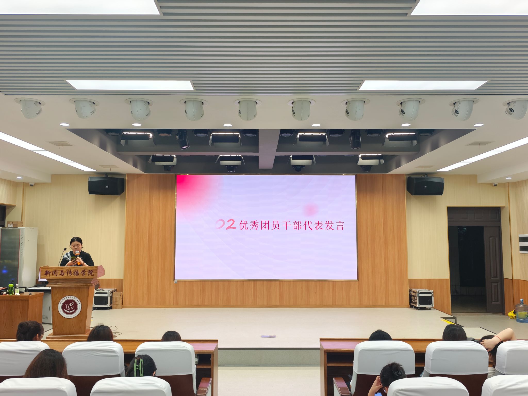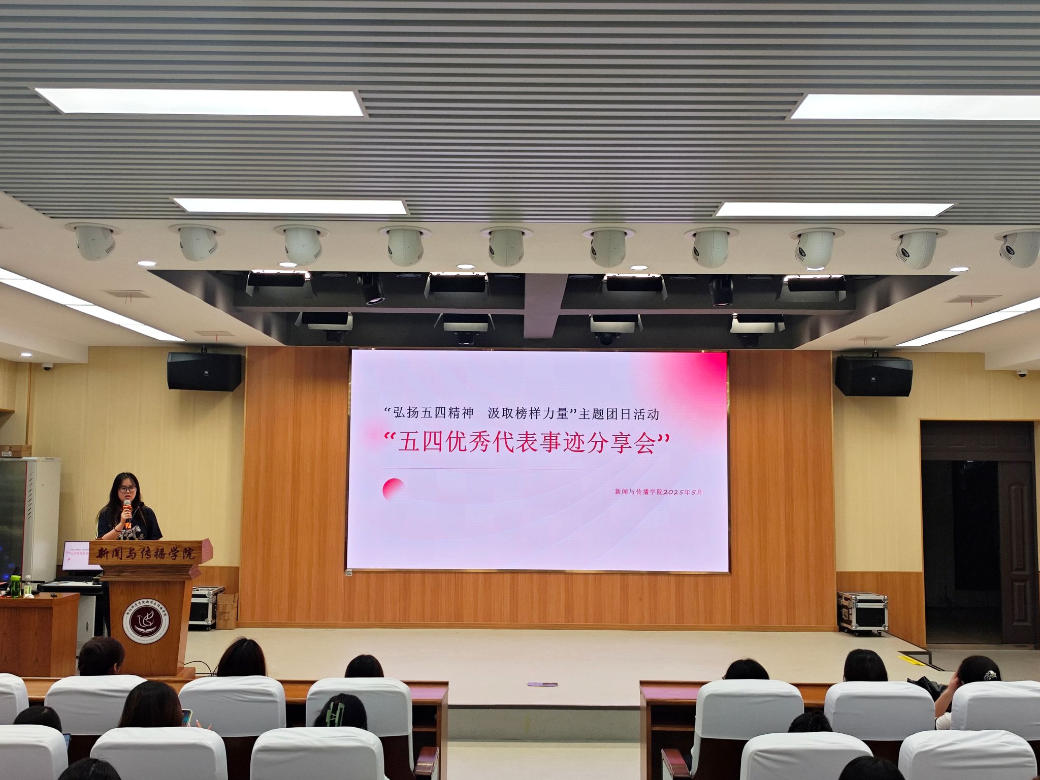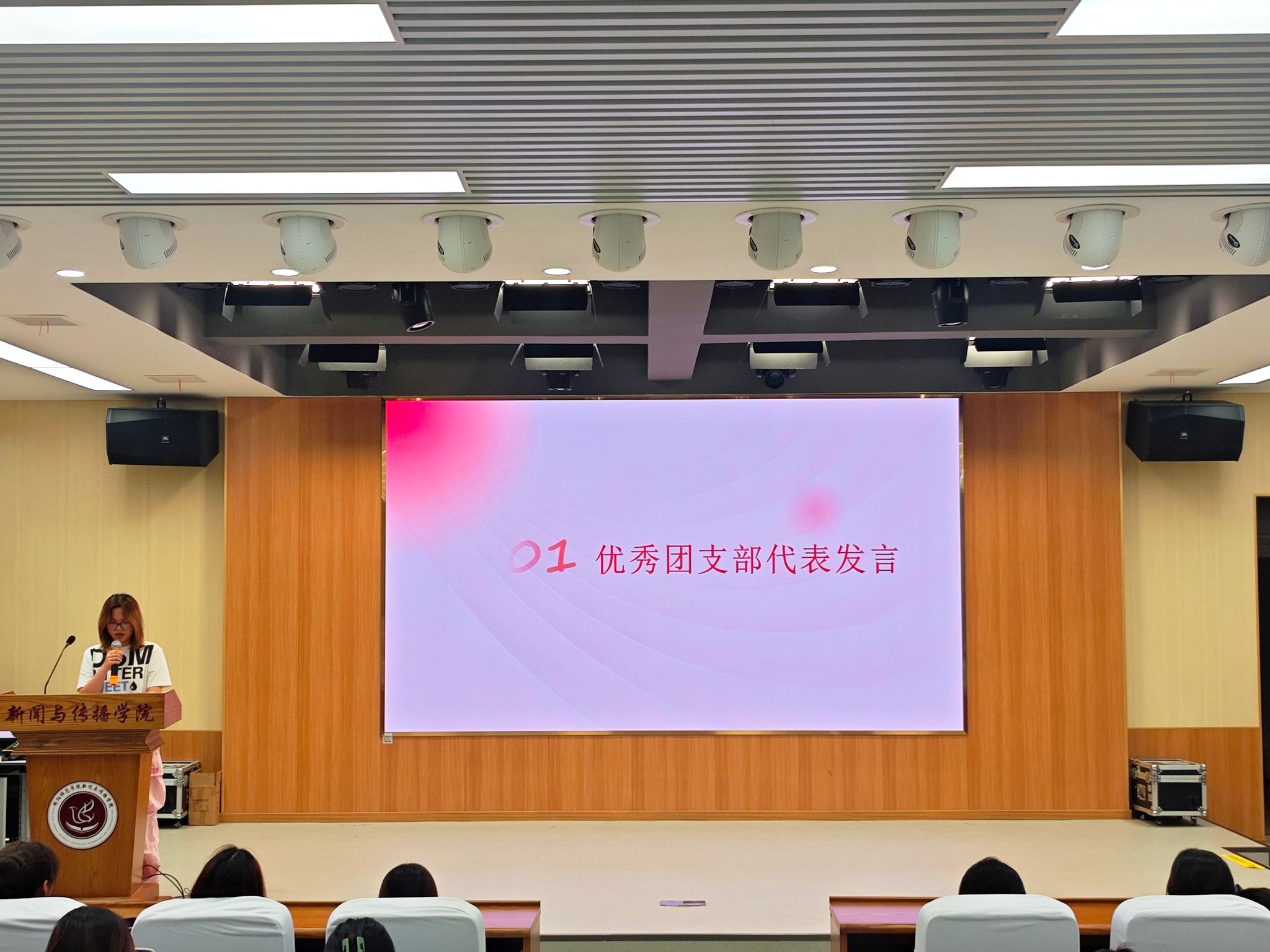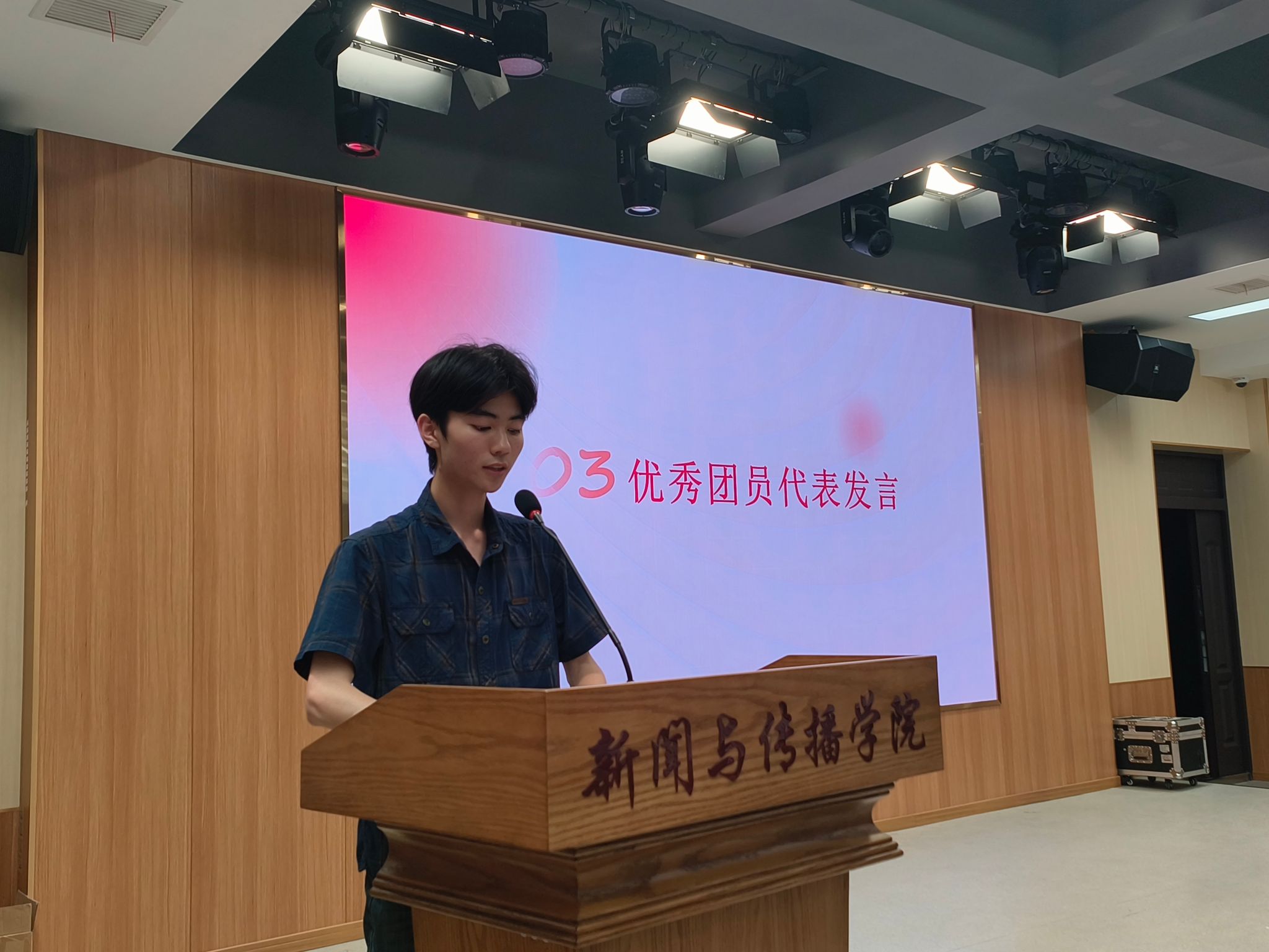 分享会上,来自不同年级和专业的优秀获奖代表依次上台,结合自身经历,分享了他们在学习、工作和社会实践中的成长故事与心得体会。他们有的在专业学习中勇攀高峰,取得优异成绩;有的在员工工作中认真负责,全心全意为同学服务;有的在社会实践中积极投身志愿服务,用实际行动践行社会责任。2022级网络与新媒体2班团支书雷阳洋同学作为优秀团支部代表,分享了本班以“思想引领”与“专业实践”双擎驱动,在追梦路上携手同行、奋力奔跑的经验和感悟,她说:“22级网新2班团支部的故事,是47颗心同频共振的缩影。我们深知,荣誉不是终点,而是新征程的起点。未来的路上,我们将继续以信仰为舵、以创新为帆、以实践为桨,在青春的海洋中乘风破浪!”