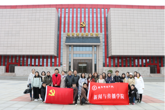 行程最后,全体党员来到党旗下重温入党誓词。张云峰书记在领誓后表示,希望同学们能牢记党的历史,遵守党的章程,学习雷锋同志“为人民服务”的精神,利用所学专业技能,更多、更好地向大众传播党的思想。